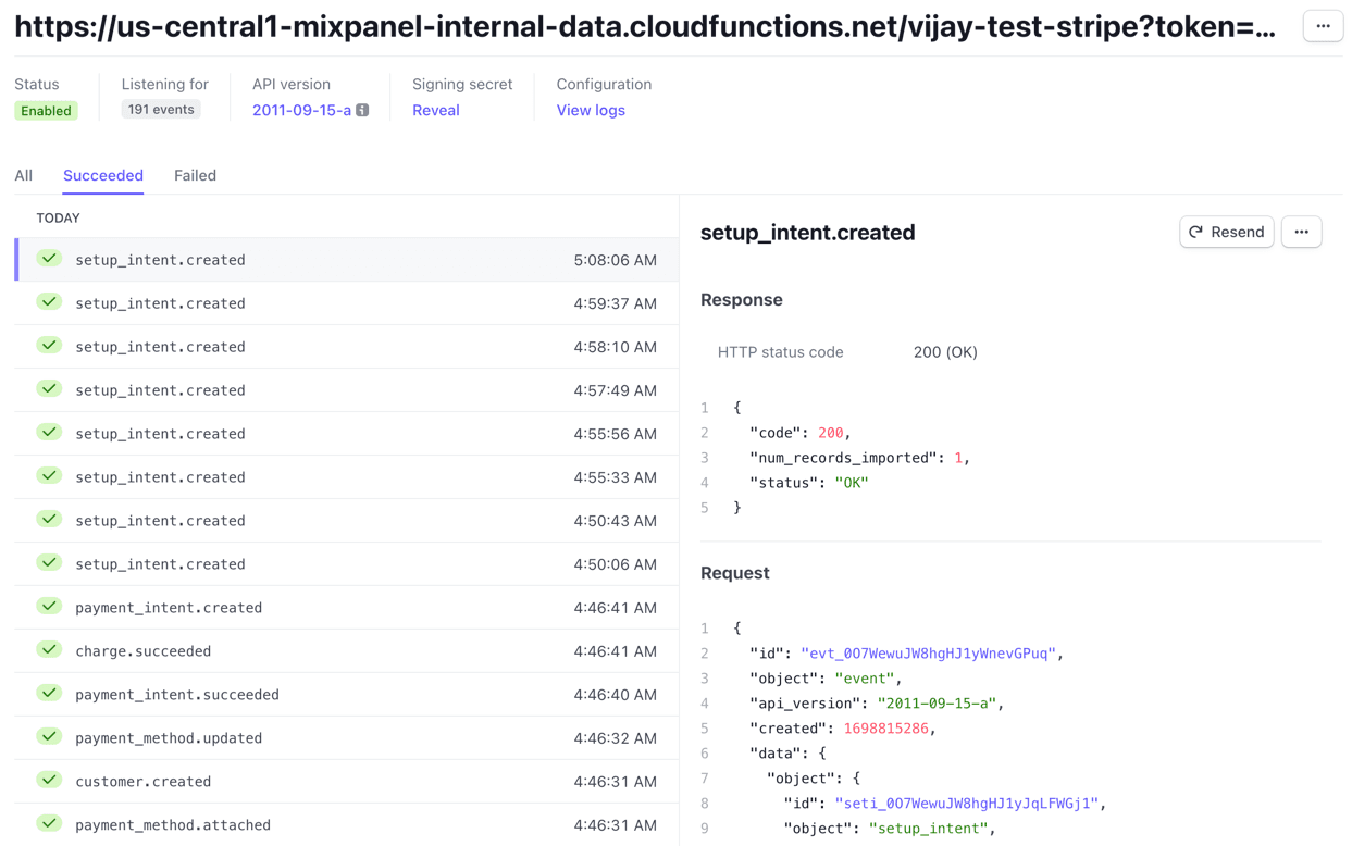 This guide demonstrates how to stream events from Stripe Webhooks to Mixpanel, via a Google Cloud Function. It requires access to a cloud account and ~10 minutes of setup time.